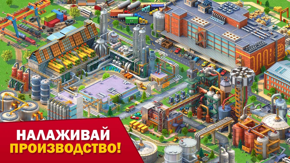 - 🏭 Промышленность и коммерция — возводите заводы, фабрики, офисы и магазины. Они дают рабочие места и пополняют бюджет.